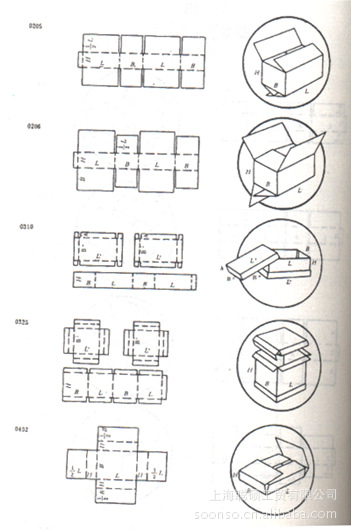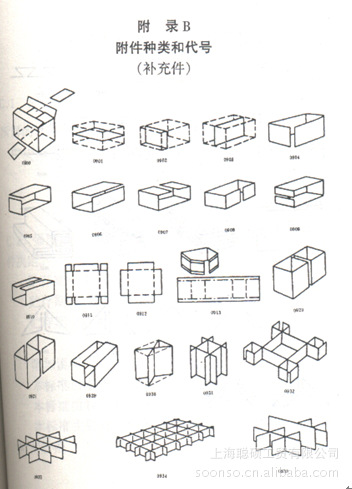 B 襯板:襯板基本上由三中,一種是全襯板,用于箱內多層堆放作分層隔離之用。第二種是過橋襯板,是用于紙箱內搖蓋合籠處,墊平空隙之用。第三種是襯圈,為提高紙箱的抗壓強度和保護商品,在紙箱的四個側面均圍上襯板。